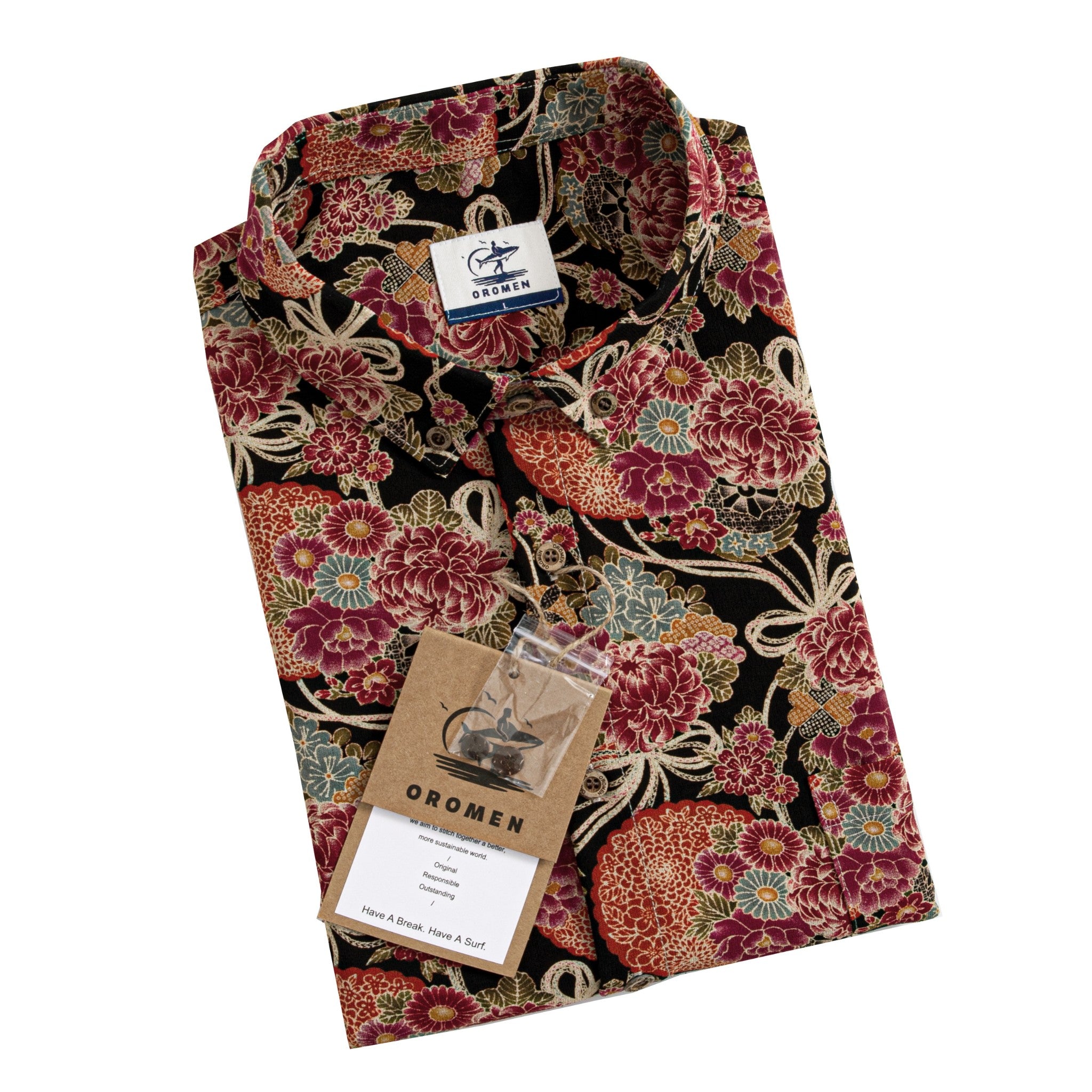 Adorned with intricate floral motifs—including symbolic chrysanthemums and peonies—set against a rich black backdrop, the design evokes elegance, resilience, and the beauty of nature.