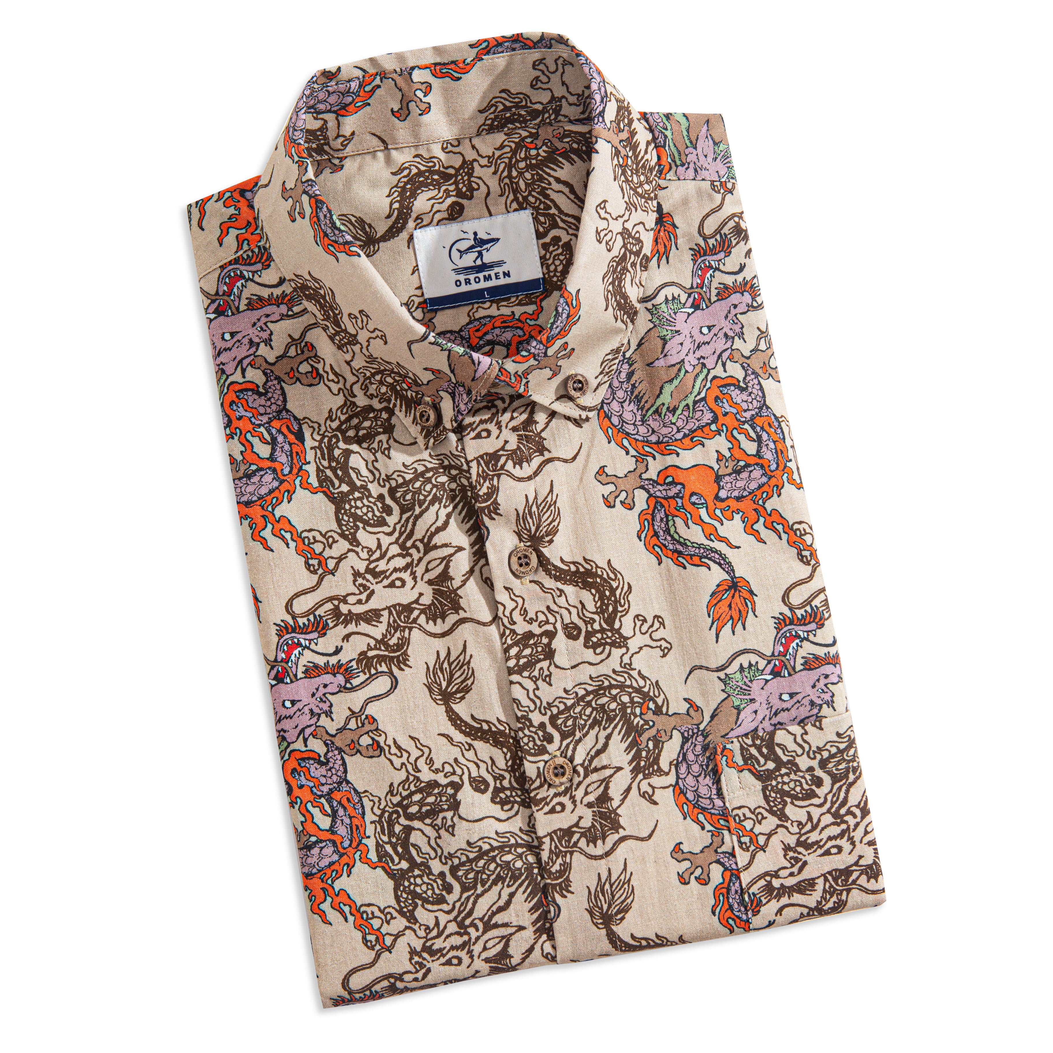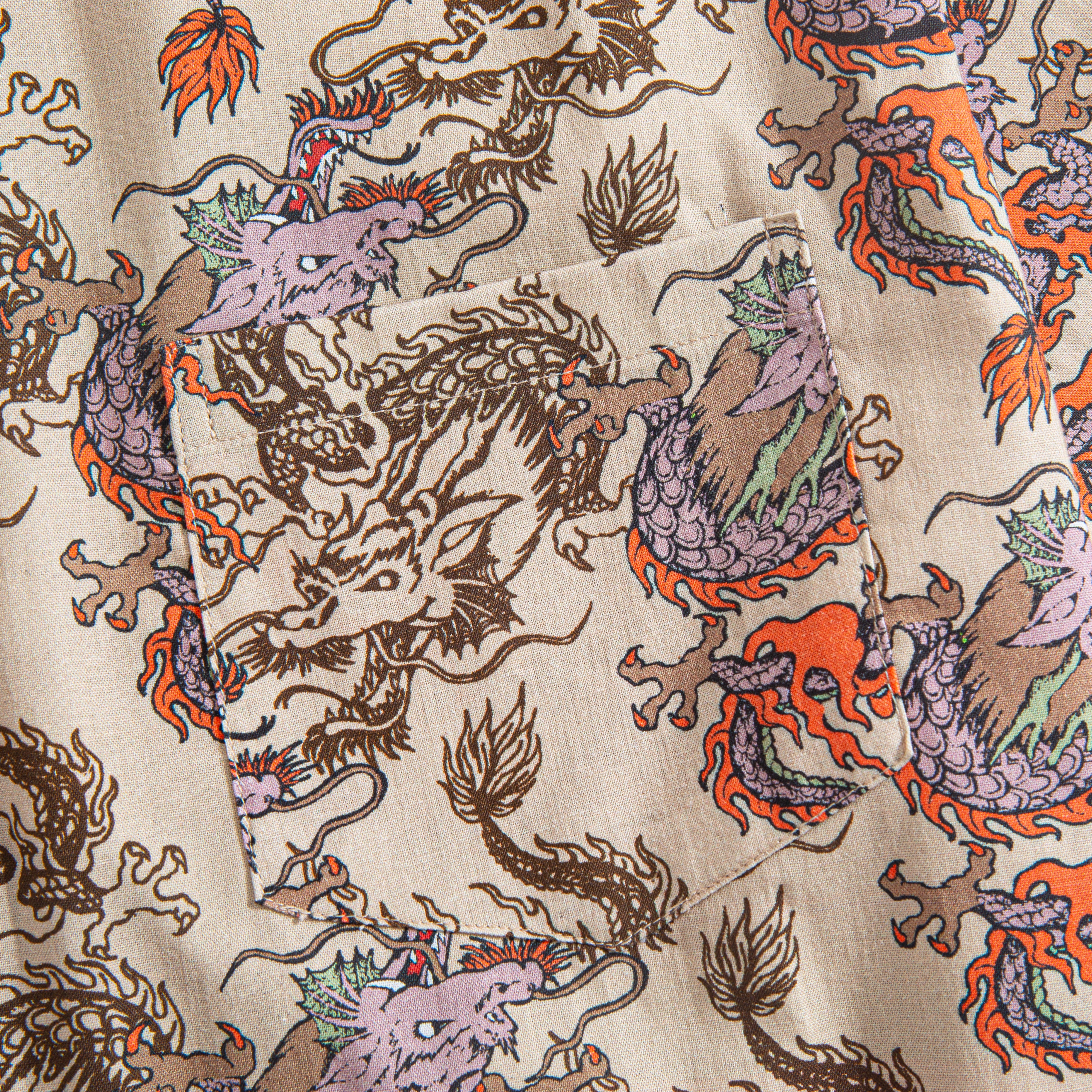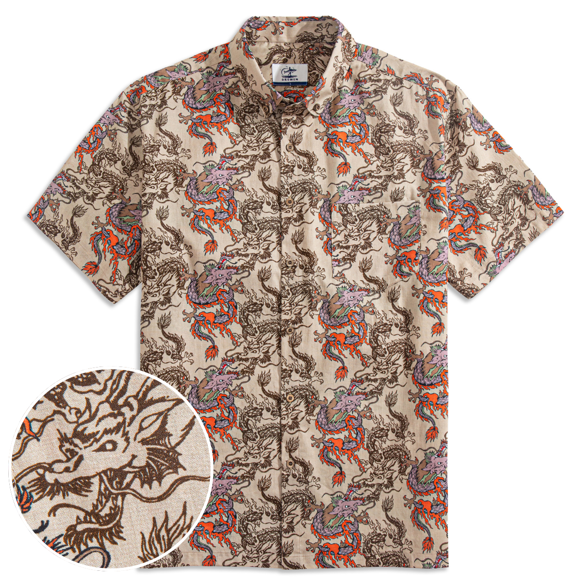 In the Jiachen Year of the Dragon, we're thrilled to launch in collaboration with renowned Asia traditional artist. In Asia culture, the dragon symbolizes authority, nobility, good fortune, and vitality. One of our biggest challenges was capturing the full majesty of a Asia dragon on an Aloha shirt, but we couldn't be more excited about the result. This groundbreaking design brings together every detail in perfect harmony, making it feel like a wearable masterpiece.