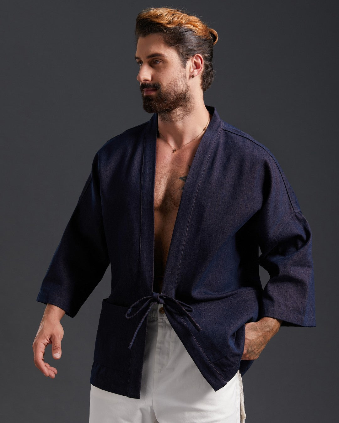 Half-wrapped Washed Oxford Kimono