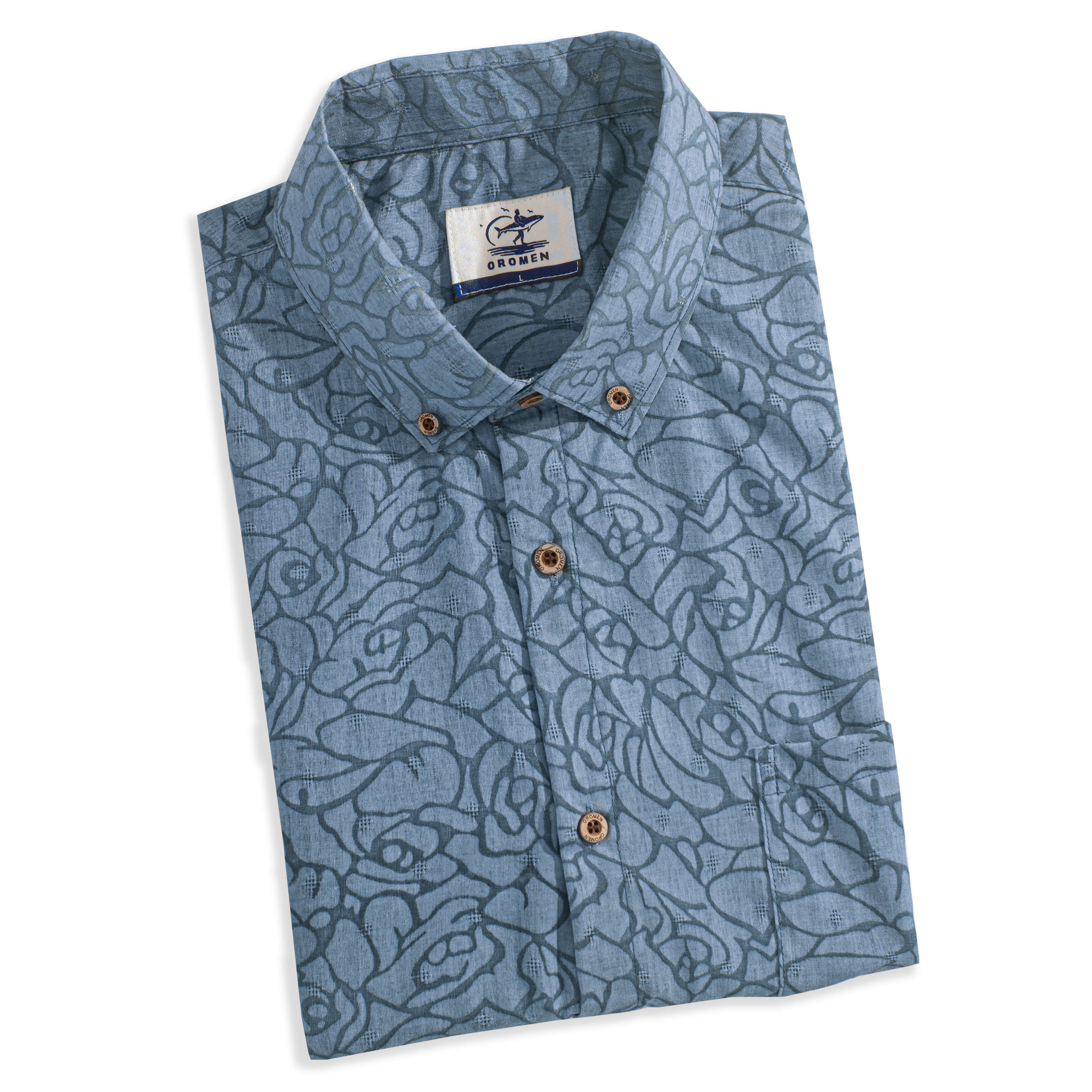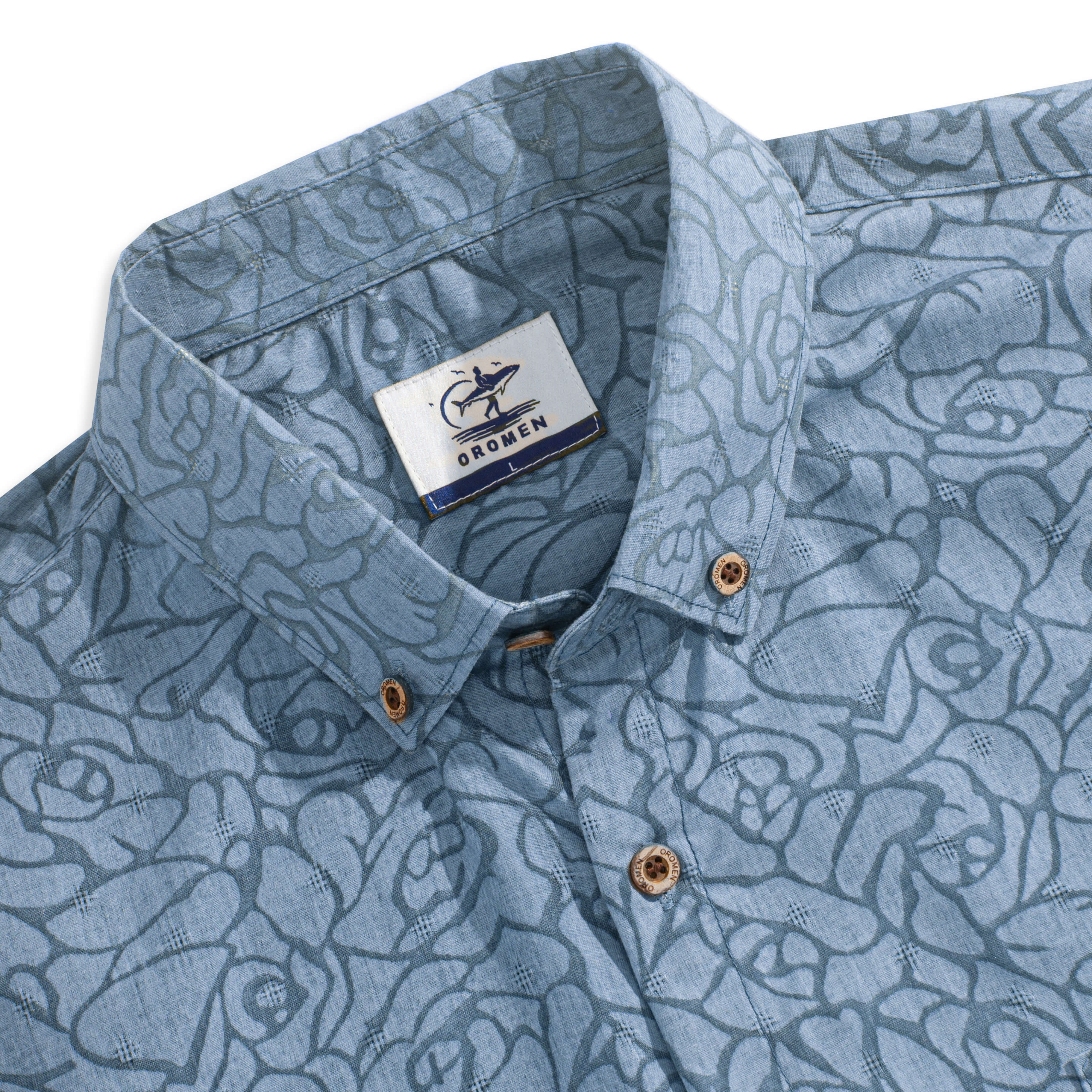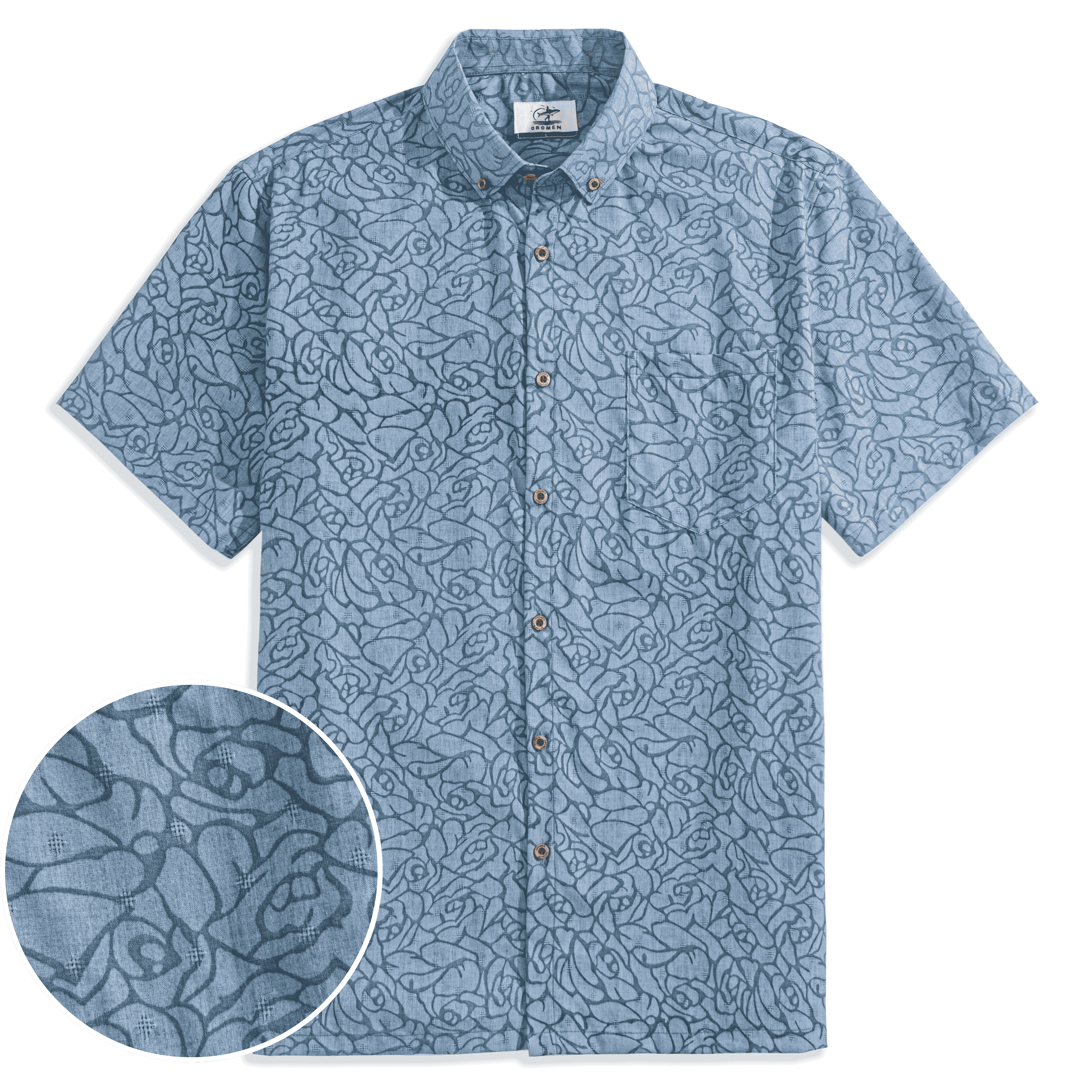 Two-Tone Woven Cotton & Linen Short Sleeve Shirt