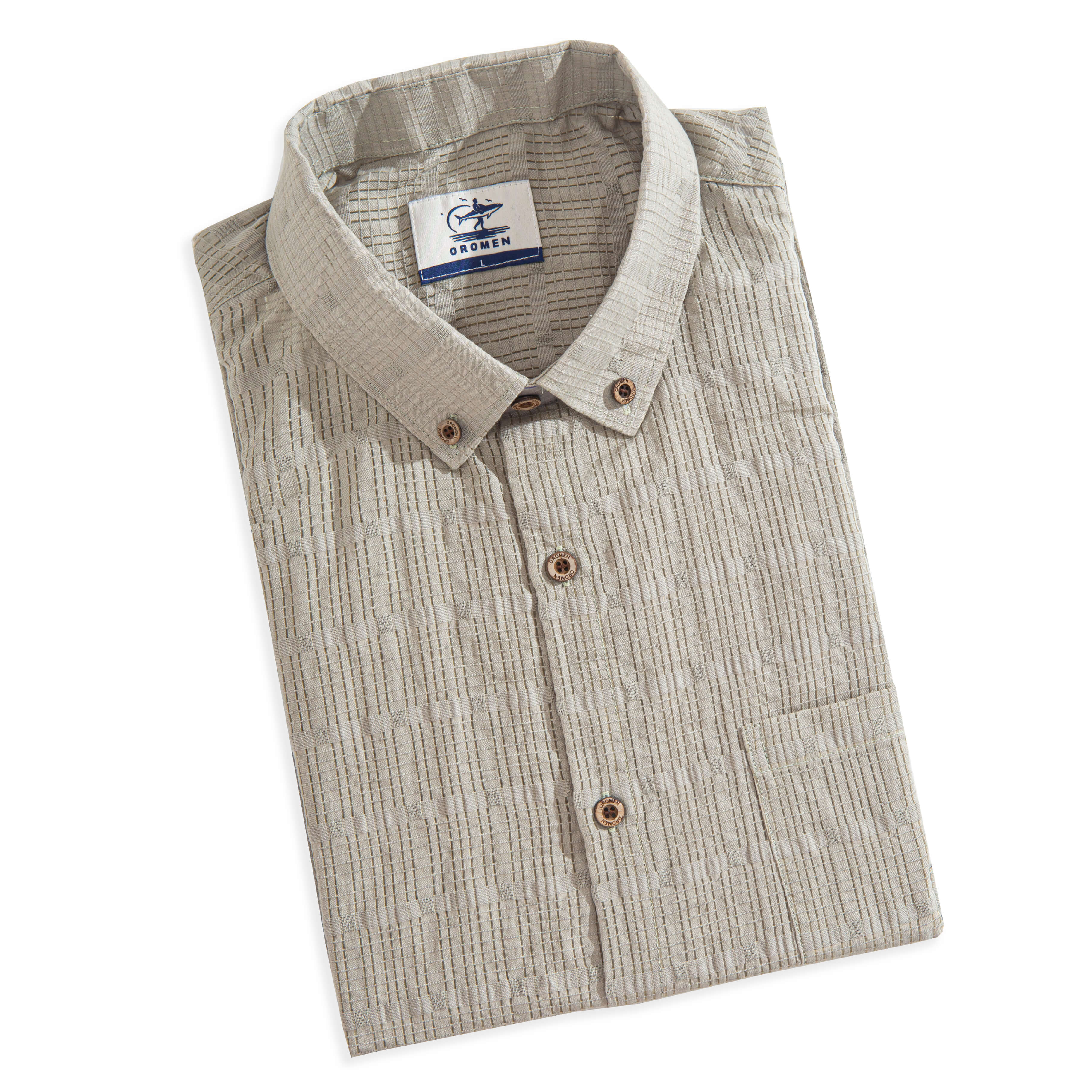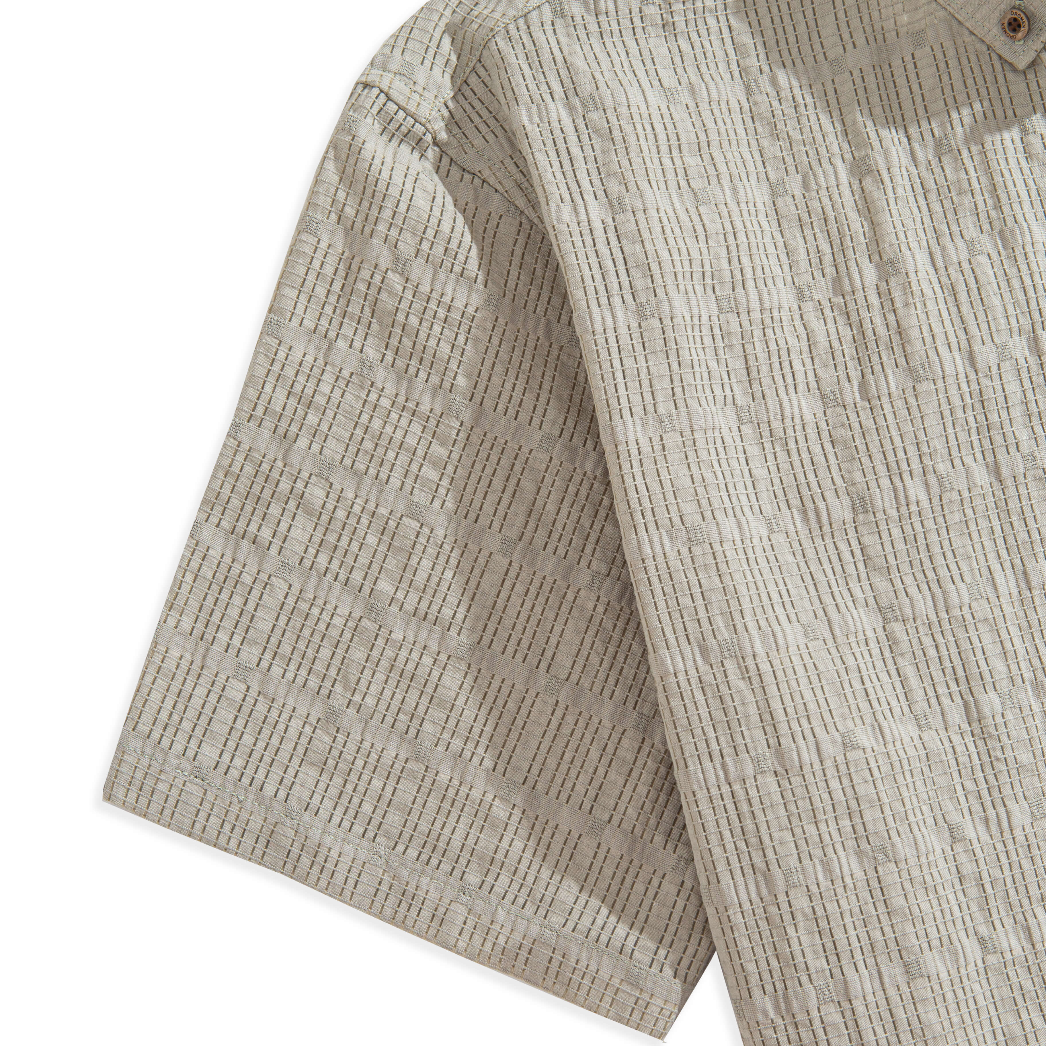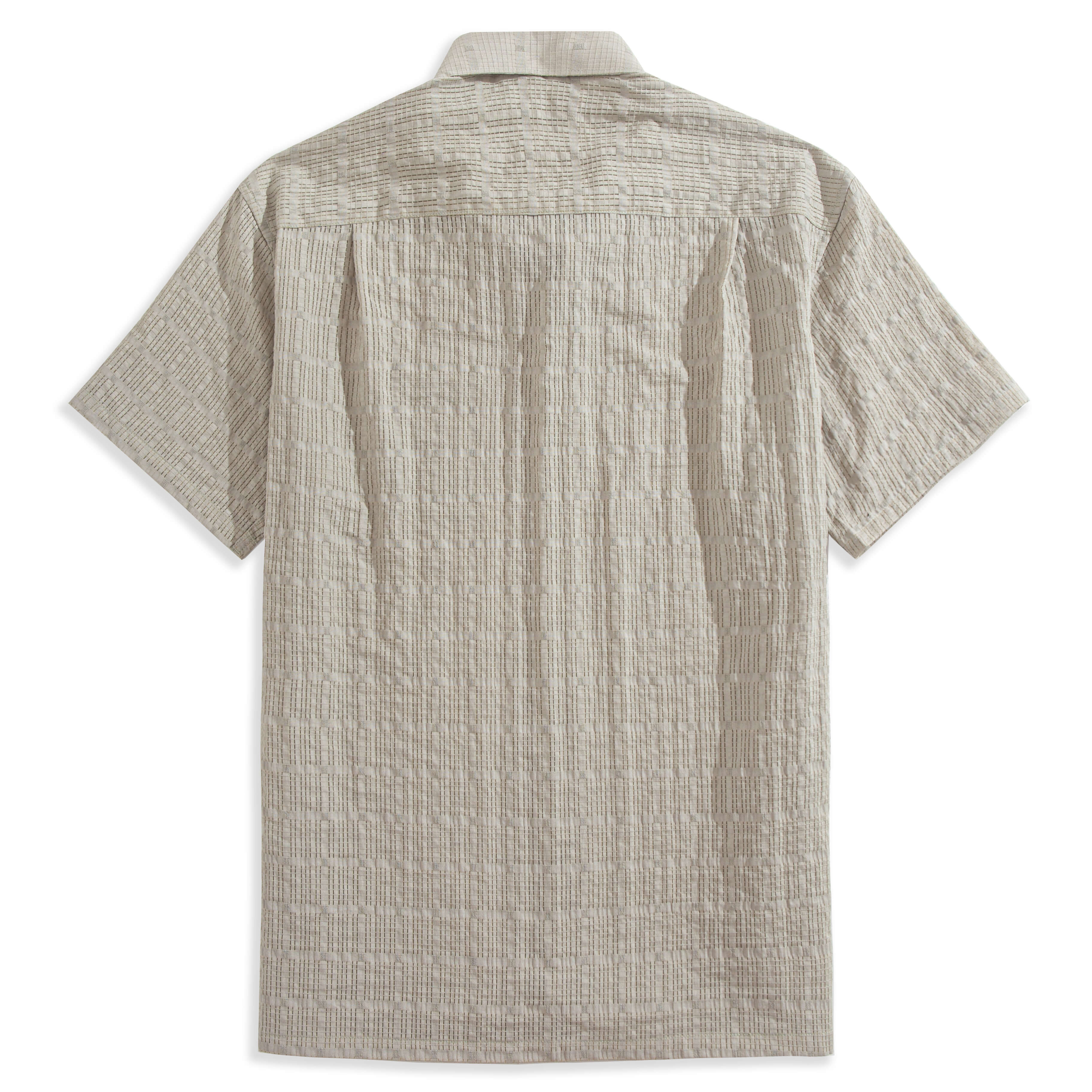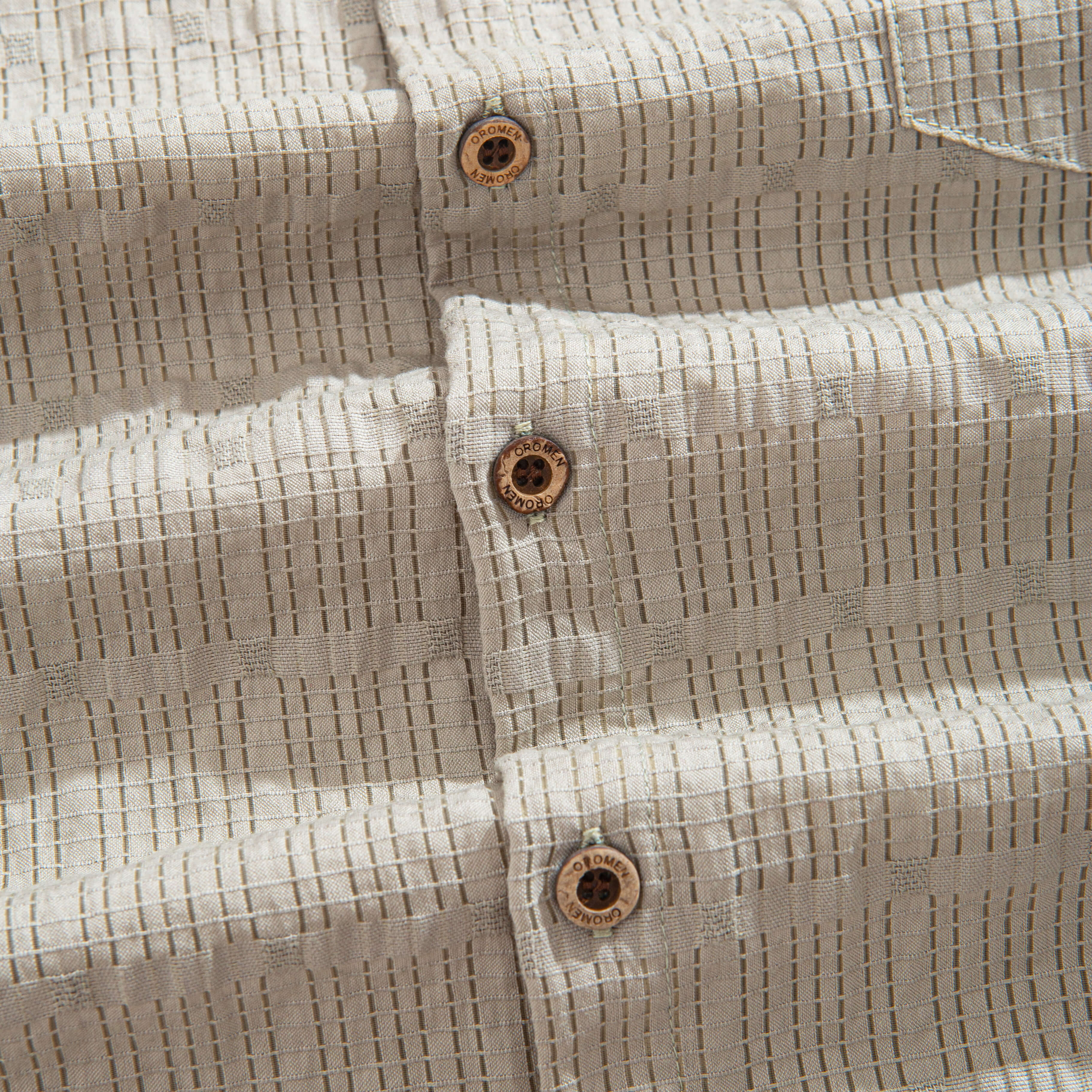 Two-Tone Woven Cotton & Linen Short Sleeve Shirt